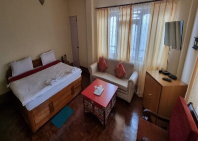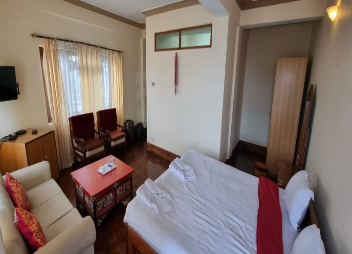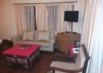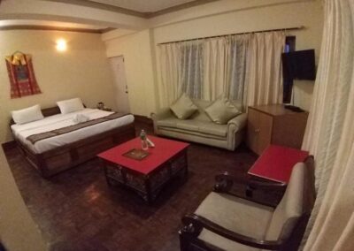 Royal Home >> Royal Accommodation: Best and largest rooms with Breathtaking views of Gangtok City and the valley from private balcony Amenities: Royal sofa set Color TV Superior bathroom fittings Bathtub Wardrobe Geyser Electric kettle Complimentary tea and coffee maker Complimentary toiletries